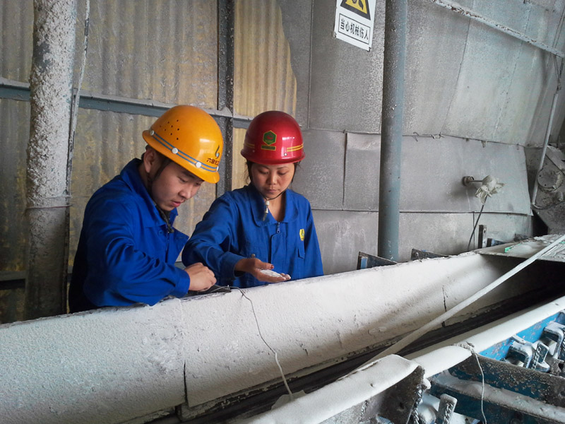 圖三:崗位人員在出料口查看磷酸一銨成品